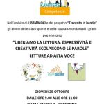 26 - 31 ottobre 2015 LIBRIAMOCI LIBRIAMOCI Liberiamo la lettura espressività e creatività scolpiscono le parole Lettura ad alta voce Leggere che piacere Lettura